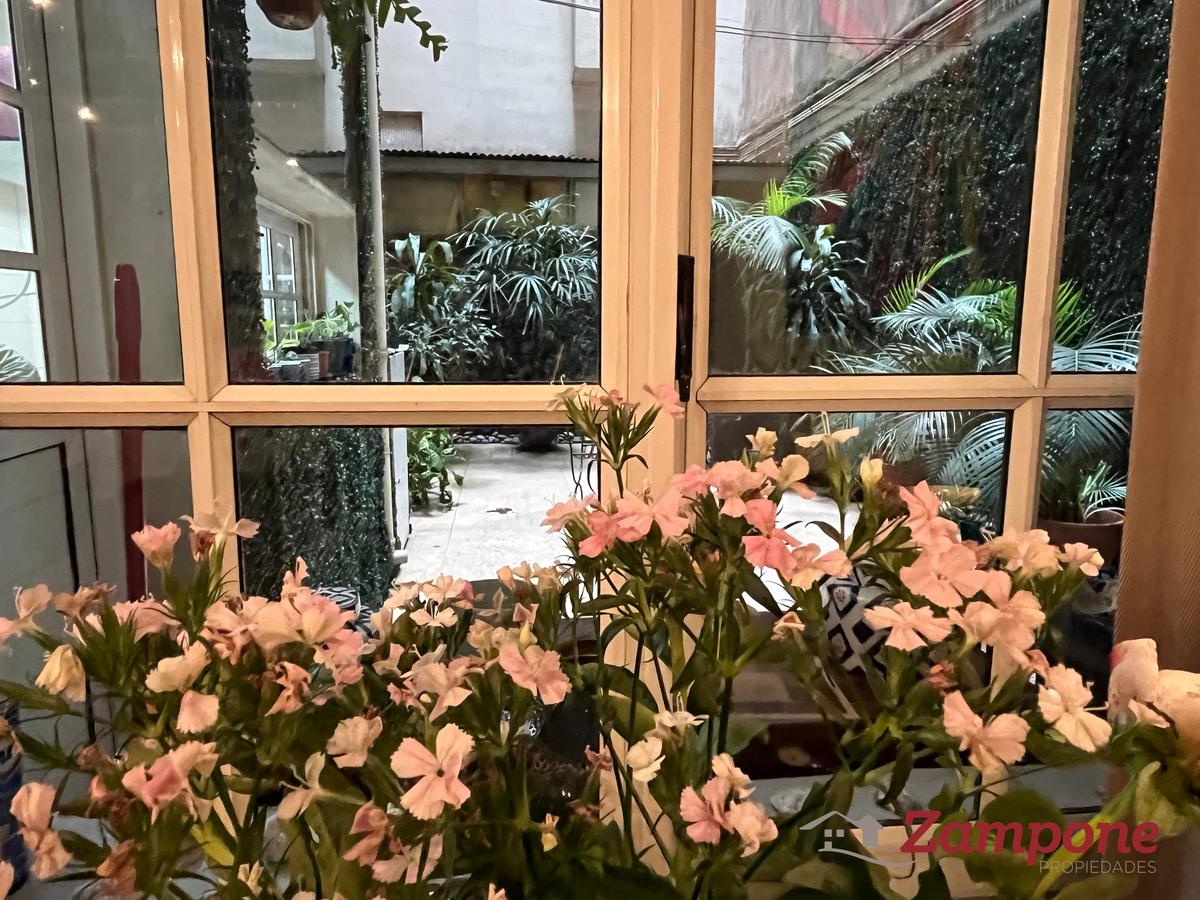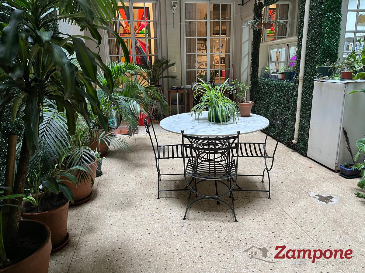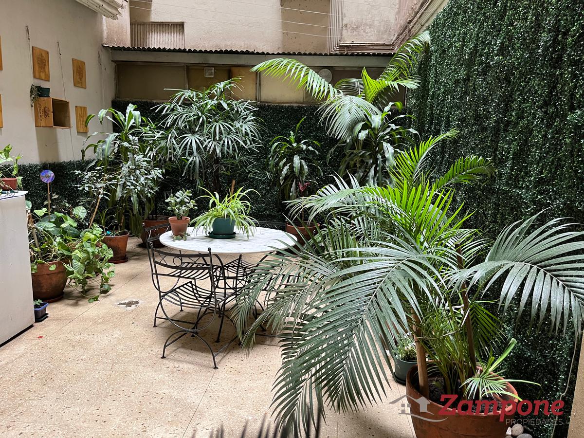 Planta baja de un edificio del siglo 19, de 95 metros cuadrados cubiertos, con un patio de 70 metros cuadrados, ambientados con plantas, bien iluminado, mesa para comer afuera y que cuenta con un toldo.