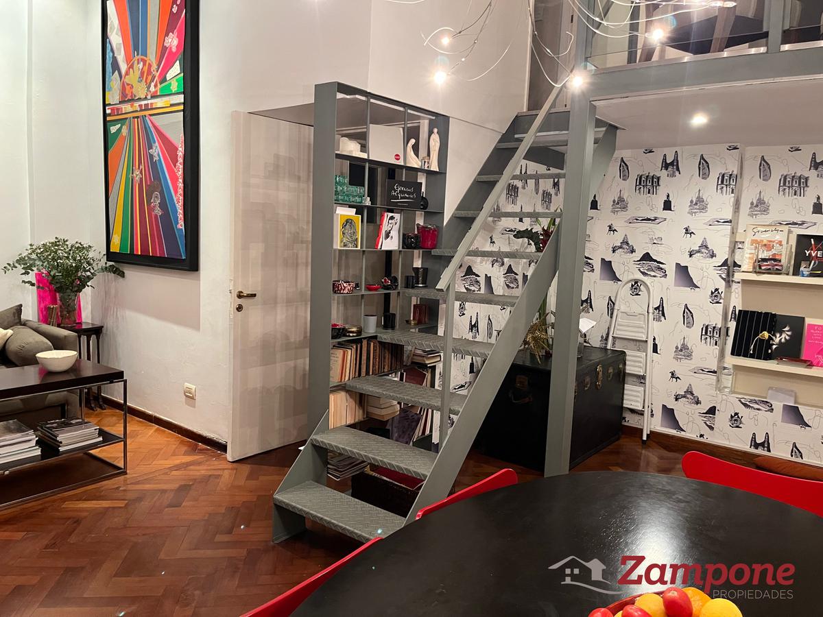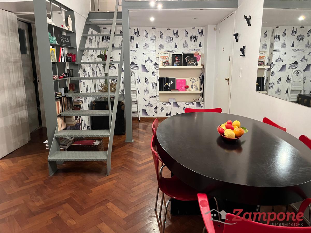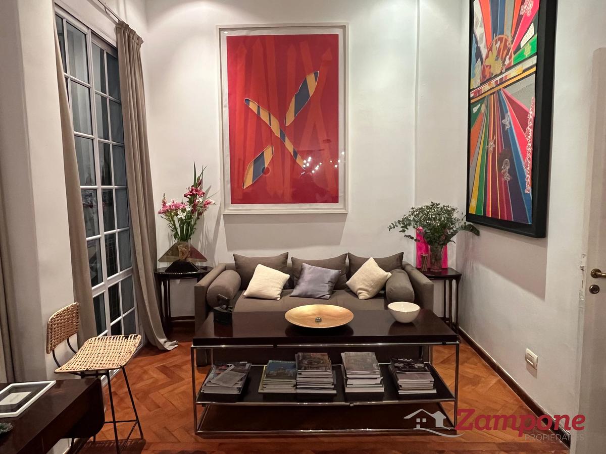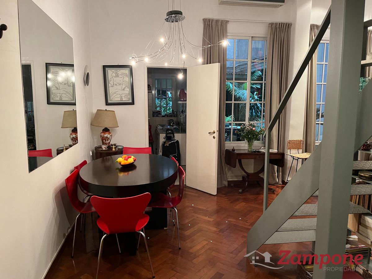 Planta baja de un edificio del siglo 19, de 95 metros cuadrados cubiertos, con un patio de 70 metros cuadrados, ambientados con plantas, bien iluminado, mesa para comer afuera y que cuenta con un toldo.