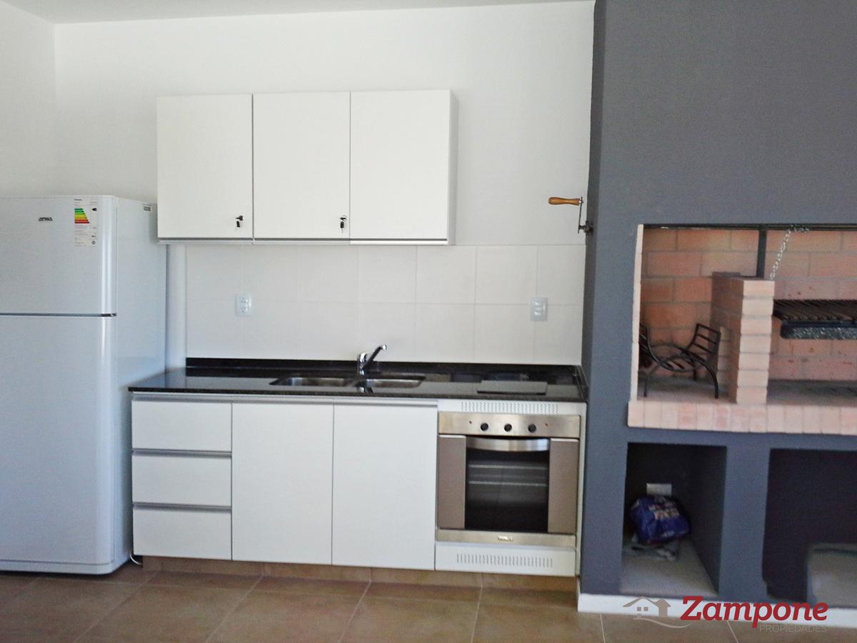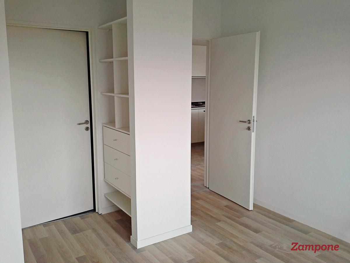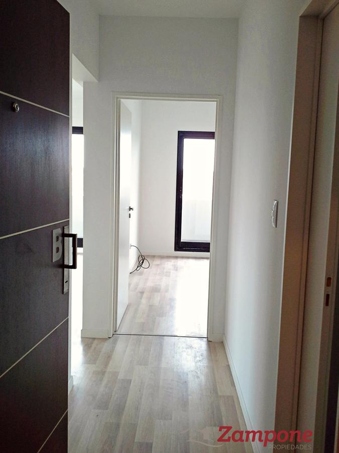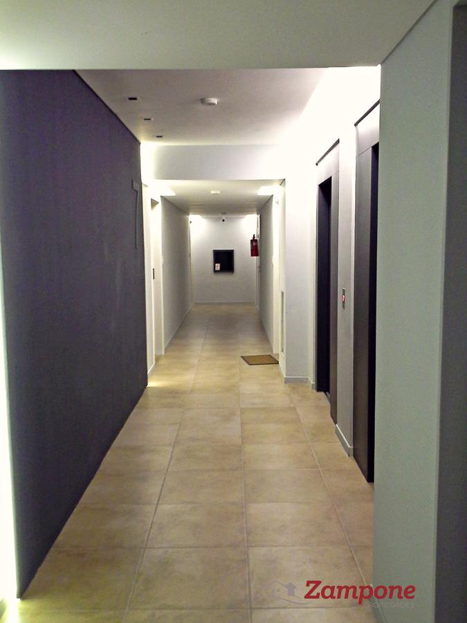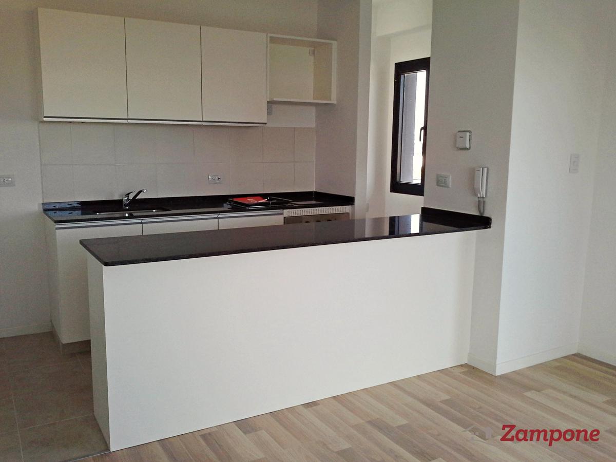 Toilette de recepción, Living comedor de 4,80 x 3,80 con cocina integrada y lavadero. Muebles de cocina en melamina con cajoneras y espacio para microondas. Barras divisoras con mesada de granito y mueble de guardado inferior. Horno y anafe eléctronico marca Longvie. Dormitorio (2,95 x 3,35) con vestidor y baño completo. Balcón de 17,23 metros cuadrados.