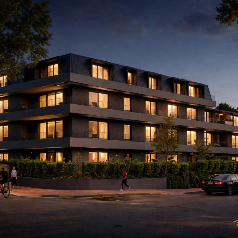 Edificio de 14 pisos con 3 ascensores.