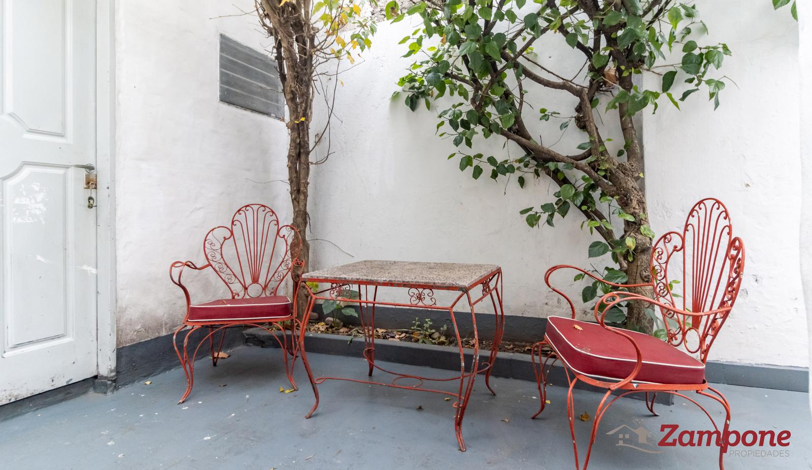 Accedemos desde el frente, nos encontramos con un pequeño recibidor y luego el primer dormitorio (3,38 x 2,90 mts.) con ventana a la calle, luego siguiendo por el pasillo de distribución tenemos el dormitorio principal (2,75 x 3,62mts.) en suite (el baño solo cuenta con box de ducha con ventilación natural), placard, AA Frio/Calor, ventana al patio. Luego tenemos la cocina (2,40 x 1,65mts) comedor diario (4,25 x 2,56mts.) muy cómoda, muy luminosa, con AA Frio/Calor, tiene un amplio toilette (1,80 x 1,46mts.) desde la misma accedemos a un patio de (3,20 x 4,20mts.), desde el cual podemos acceder al lavadero (3 x 1,38mts.) y a la terraza mediante una escalera caracol, otro acceso de la cocina es por las cocheras (parte cubierta 3,70 x 3,46mts. Y descubierta 6,15 x 3,43mts.)