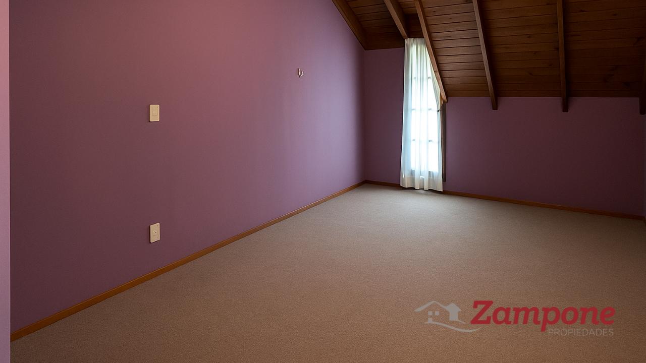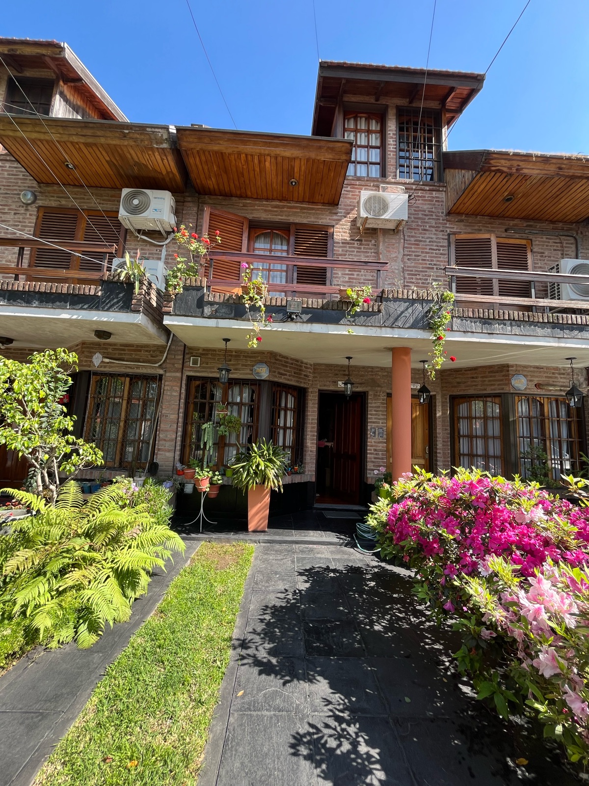 Ingreso al living comedor, con bow window con vidrios repartidos de madera laqueada hacia el frente. Pisos de madera laqueada y calefactor. Se continúa con un pequeño hall de distribución; hacia la derecha el toilette con pisos cerámicos; a la izquierda acceso a la escalera hacia planta superior en madera laqueada. Hacia atrás, la cocina con comedor diario integrado, con pisos cerámicos, muebles de cocina en color wengue en altos y bajos, cocina Orbis, extractor, mesada de marmol.Acceso al jardín por puerta doble corrediza con vidrios repartidos en madera laqueada, patio con pisos cerámicos, techo corredizo de policarbonato, sector de lavado, parrilla. Se continúa al jardín.Planta alta: Hall de distribución de los 2 dormitorios y el baño. El dormitorio principal da al frente con balcón. Puertas ventanas corredizas de madera laqueada con vidrios repartido y postigones. Calefactor y A/A. Piso flotante imitación madera, ventilador de techo. Vestidor con espejos, con muebles y accesorios en altura móviles.El segundo dormitorio da al contrafrente con ventanas de vidrio repartido de madera laqueada, piso de alfombra, placard de 2 hojas con baulera, calefactor.Baño principal con bañera y mampara, vanitory, ducha escocesa y accesorios.Playroom: acceso por escalera rebatible de madera, piso de alfombra, ventanas al frente, espacio de termotanque y tanque deagua.Apto Crédito BNA