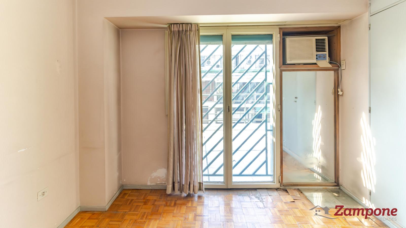 • Dos dormitorios: el principal al frente con salida al balcón y aire acondicionado, y el segundo con vista al pulmón del edificio.