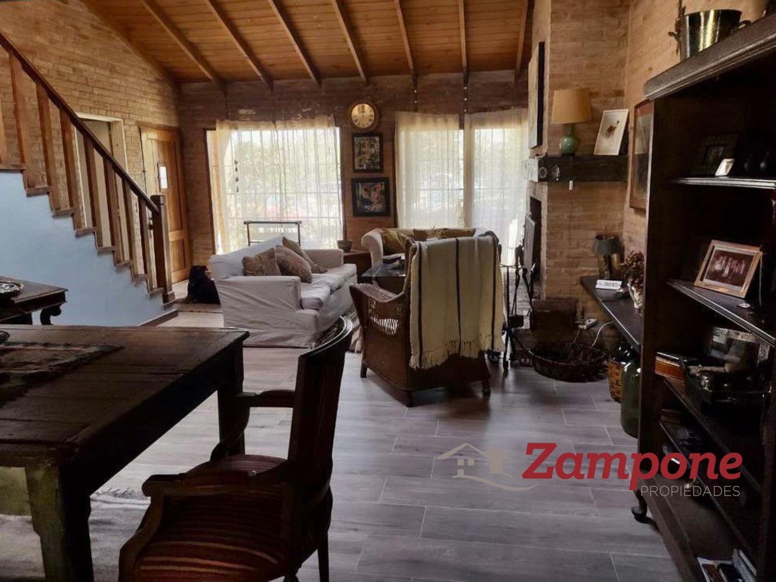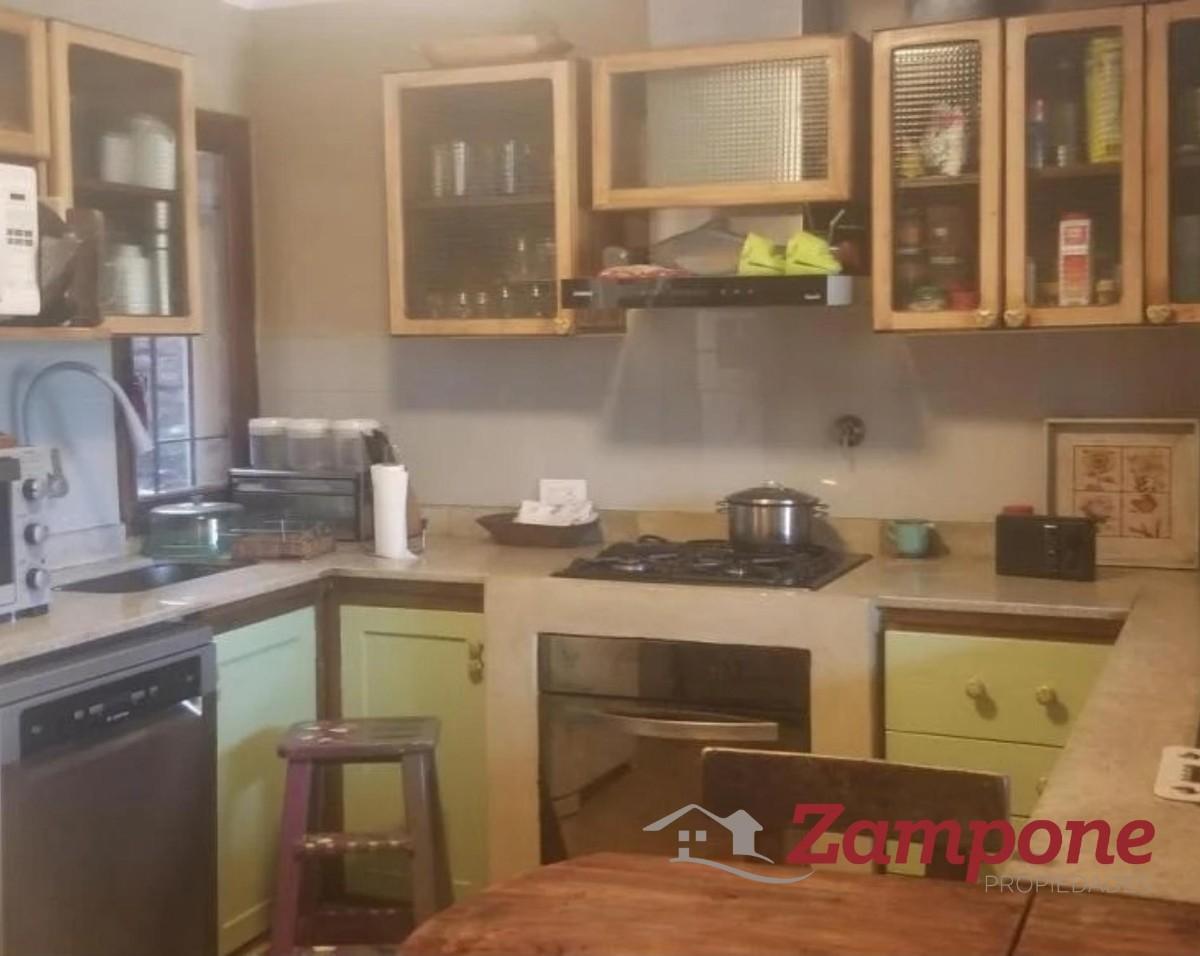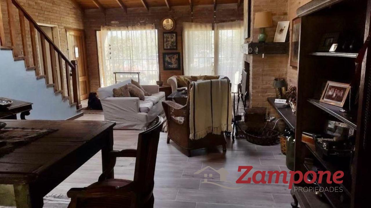 Casa de 2 plantas, con cuatro dormitorios, 3 baños. Espacio guarda coche para 3 vehículos.Al ingresar a la casa nos encontramos con amplio living comedor con chimenea y una escaleraque lleva a la planta alta. A la derecha , la cocina, amplia con espacio para guardado , lavavajillas.Tanto el living como la cocina dan al frente.A continuación del living, una sala de estar, con importante pantalla de tv, sillones y ventanal consalida al jardín. Hacia la derecha, el comedor, que es contiguo a la cocina, conectados por unpasillo de distribución, al cual confluyen también un dormitorio con placard , el toilette, que poseeducha y una puerta con salida a un lateral. Este sector es el espacio de lavado, ya que esta ellavarropas, secarropas y lugar para tender.Desde la sala de estar se sale al jardín, de unos 10 m2 x 10m2. allí se emplaza la pileta hacia laizquierda y a la derecha el jardín. Cerrando una muy buena galería , con mesa y sillas y una parrilla.El acceso a la planta alta es por la escalera de madera que se encuentra en el living.Se llega a un espacio de distribución amplio, que balconea hacia el living. Subiendo 2 escalones,se accede a un hall de distribución a través del cual , a la derecha se ingresa a la suite, amplia convestidor y baño, con vista al frente. A la izquierda, 2 amplios dormitorios con placard quecomparten un baño, ambos con vistas al jardín.Todas las aberturas son de madera. Casa muy canchera y actual, muy bien decorada.Queda con toda la vajilla completa, como así también blanqueria, tanto en sabanas comomantelería y toallas.