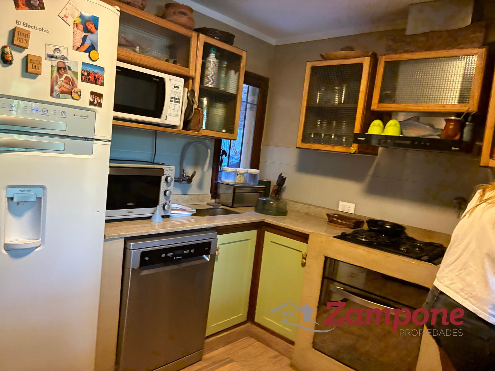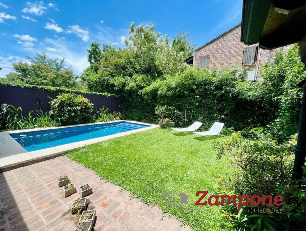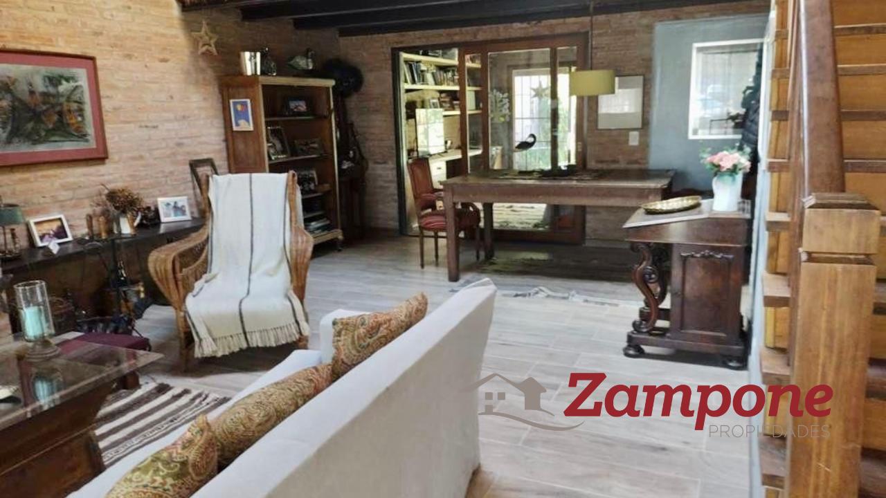 Casa de 2 plantas, con cuatro dormitorios, 3 baños. Espacio guarda coche para 3 vehículos.Al ingresar a la casa nos encontramos con amplio living comedor con chimenea y una escaleraque lleva a la planta alta. A la derecha , la cocina, amplia con espacio para guardado , lavavajillas.Tanto el living como la cocina dan al frente.A continuación del living, una sala de estar, con importante pantalla de tv, sillones y ventanal consalida al jardín. Hacia la derecha, el comedor, que es contiguo a la cocina, conectados por unpasillo de distribución, al cual confluyen también un dormitorio con placard , el toilette, que poseeducha y una puerta con salida a un lateral. Este sector es el espacio de lavado, ya que esta ellavarropas, secarropas y lugar para tender.Desde la sala de estar se sale al jardín, de unos 10 m2 x 10m2. allí se emplaza la pileta hacia laizquierda y a la derecha el jardín. Cerrando una muy buena galería , con mesa y sillas y una parrilla.El acceso a la planta alta es por la escalera de madera que se encuentra en el living.Se llega a un espacio de distribución amplio, que balconea hacia el living. Subiendo 2 escalones,se accede a un hall de distribución a través del cual , a la derecha se ingresa a la suite, amplia convestidor y baño, con vista al frente. A la izquierda, 2 amplios dormitorios con placard quecomparten un baño, ambos con vistas al jardín.Todas las aberturas son de madera. Casa muy canchera y actual, muy bien decorada.Queda con toda la vajilla completa, como así también blanqueria, tanto en sabanas comomantelería y toallas.