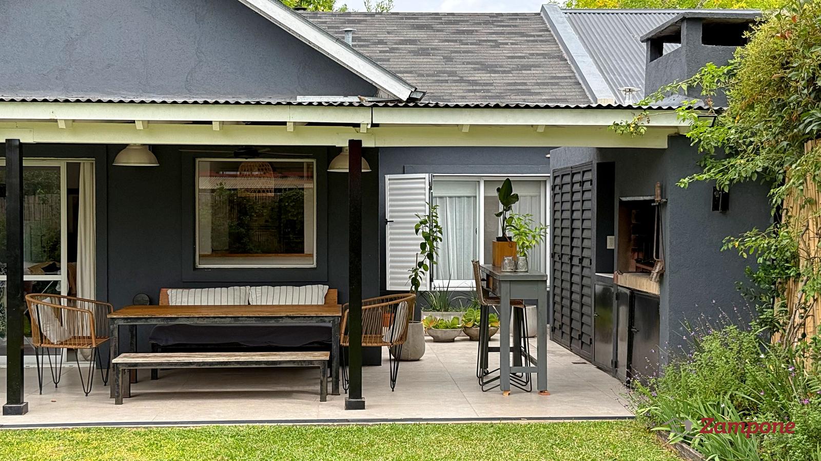 Muy linda casa desarrollada en una planta, ubicada en el barrio privado Los Álamos – Rincón de Milberg, Tigre, sobre lote interno con excelente privacidad.