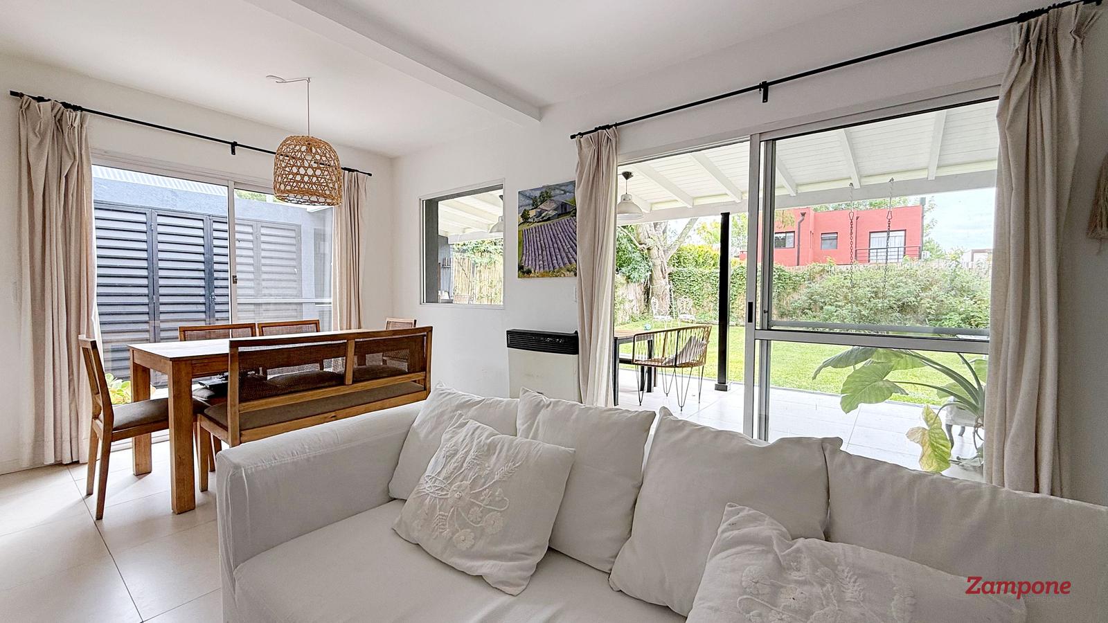 Al ingresar, un hall de recepción ordena el acceso y da paso a un espacio social amplio y luminoso, donde el living, el comedor y la cocina integrada conviven de manera muy cómoda. Este ambiente es uno de los grandes protagonistas de la casa, no solo por sus dimensiones sino también por su conexión directa con la galería y el jardín, generando una excelente integración interior-exterior.