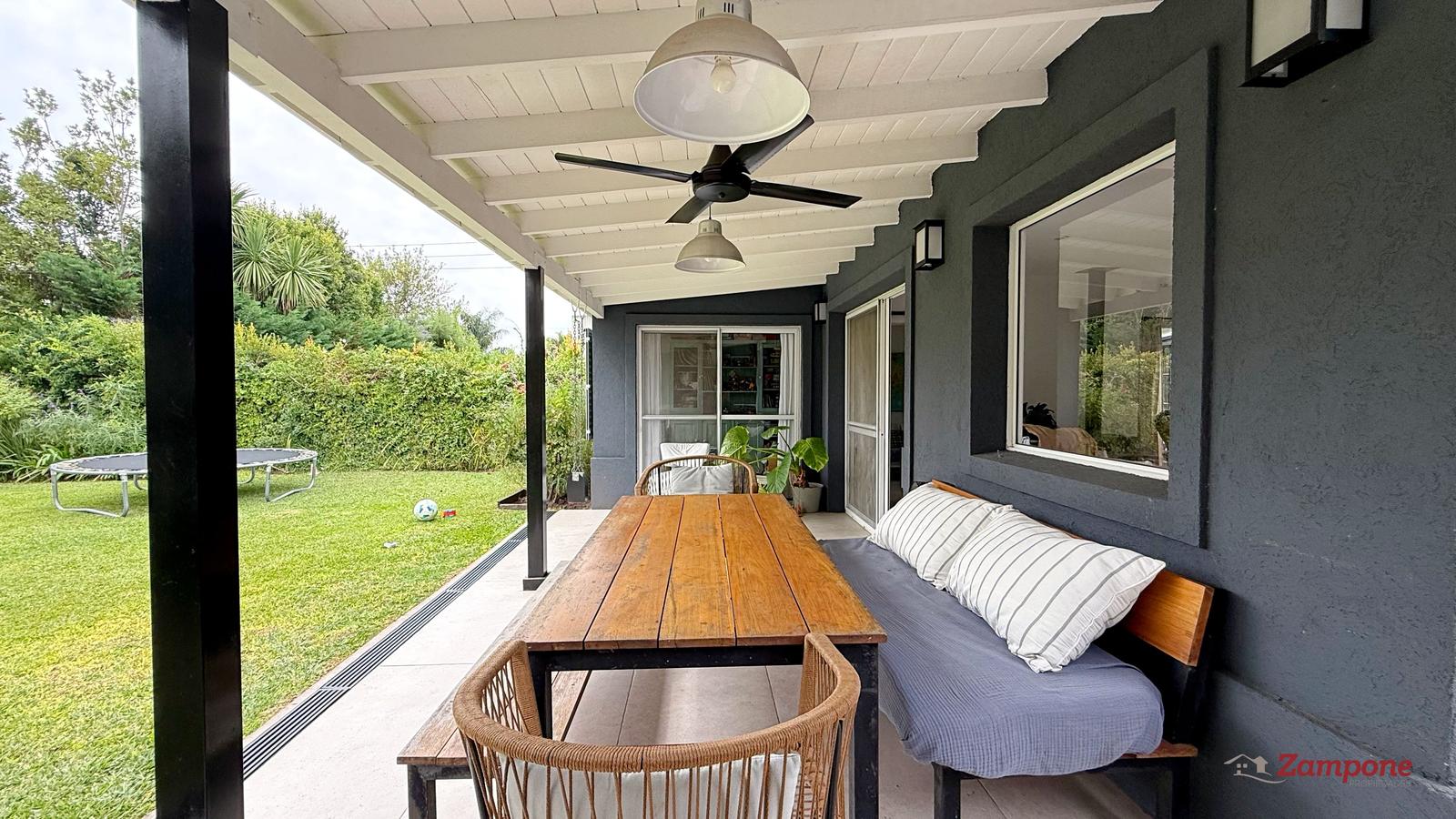 Hacia el exterior, la casa ofrece una galería techada con parrilla, pensada para disfrutar durante todo el año, y un jardín parquizado de muy buen tamaño, con espacio suficiente para sumar pileta si se desea. También cuenta con lavadero independiente, sector de guardado tipo depósito y espacio de cochera.